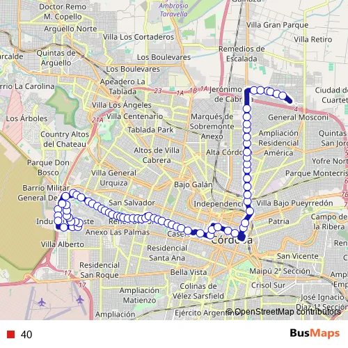 See why over 2 million users trust and consider busmaps.com as the best public transport website. busmaps gives you Cordoba Buses suggested routes, real-time bus tracker, line route maps in Cordoba, and helps to find the closest 40 bus stops near you. No internet available? Download an offline PDF map and bus schedule for the 40 bus to take on your trip.