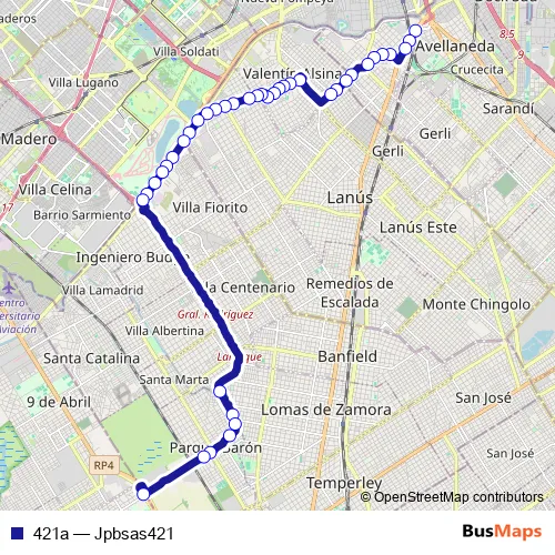 Avenida Juan XXIII - Presidente Juan Domingo Perón - General Juan José Valle - Carlos Pellegrini - Avenida Coronel Osorio - Coronel Francisco Seguí - Coronel Eusebio Martínez de Mollinedo - Coronel Osorio - Avenida Remedios de Escalada de San Martín - Avenida Presidente Bernardino Rivadavia - Edmundo H. Fernández - Avenida Hipólito Yrigoyen - Jerónimo José Podestá