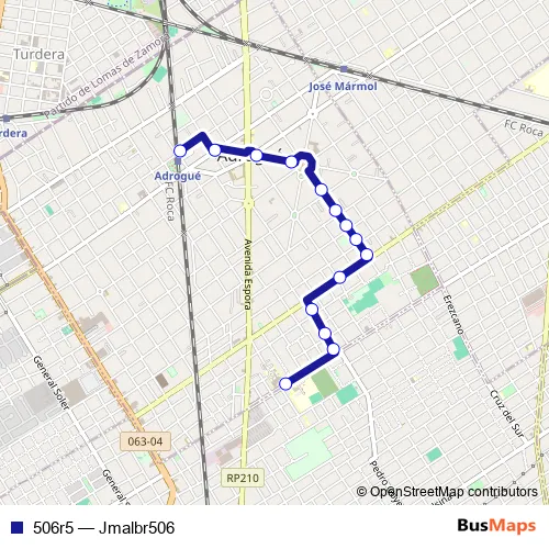 See why over 2 million users trust and consider busmaps.com as the best public transport website. busmaps gives you Lomas de Zamora Buses suggested routes, real-time bus tracker, line route maps in Lomas de Zamora, and helps to find the closest 506r5 bus stops near you. No internet available? Download an offline PDF map and bus schedule for the 506r5 bus to take on your trip.