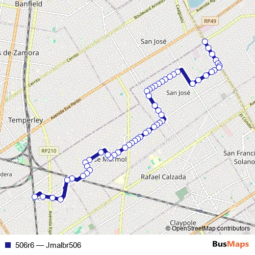 See why over 2 million users trust and consider busmaps.com as the best public transport website. busmaps gives you Lomas de Zamora Buses suggested routes, real-time bus tracker, line route maps in Lomas de Zamora, and helps to find the closest 506r6 bus stops near you. No internet available? Download an offline PDF map and bus schedule for the 506r6 bus to take on your trip.