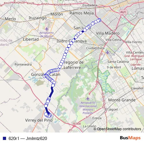 See why over 2 million users trust and consider busmaps.com as the best public transport website. busmaps gives you San Justo Buses suggested routes, real-time bus tracker, line route maps in San Justo, and helps to find the closest 620r1 bus stops near you. No internet available? Download an offline PDF map and bus schedule for the 620r1 bus to take on your trip.