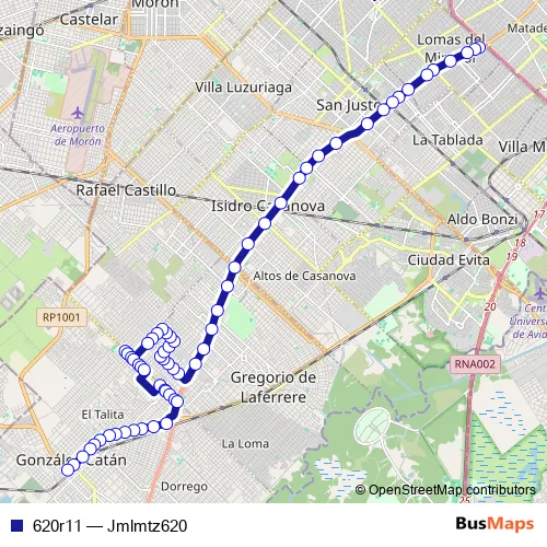 Bus 620r11 - Jmlmtz620 in San Justo: Stops & Timetable