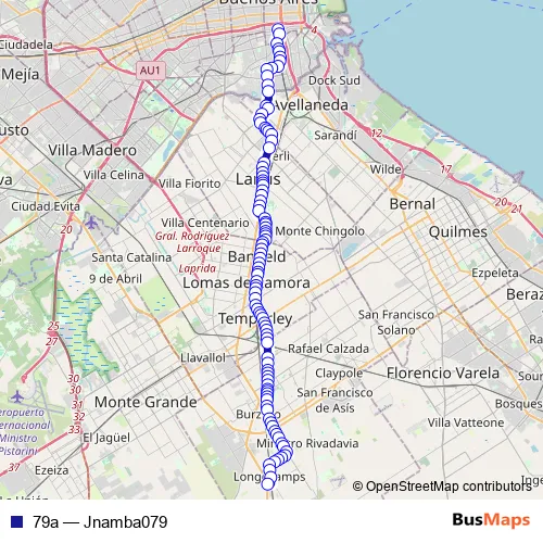 See why over 2 million users trust and consider busmaps.com as the best public transport website. busmaps gives you Lomas de Zamora Buses suggested routes, real-time bus tracker, line route maps in Lomas de Zamora, and helps to find the closest 79a bus stops near you. No internet available? Download an offline PDF map and bus schedule for the 79a bus to take on your trip.