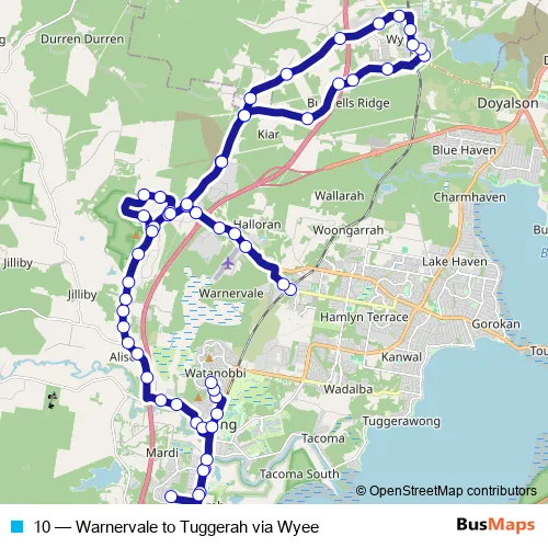 Bus 10 - Warnervale to Tuggerah via Wyee in Jilliby: Stops & Timetable