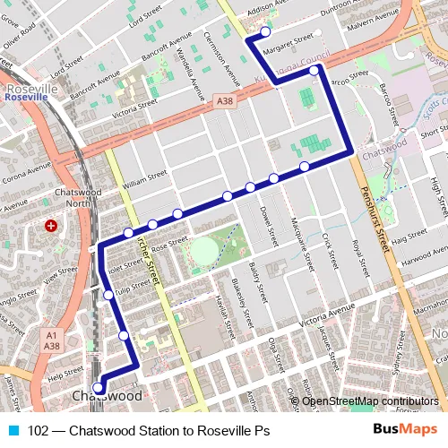 Click here to view the nearest 102 - Chatswood Station to Roseville Ps bus stop.