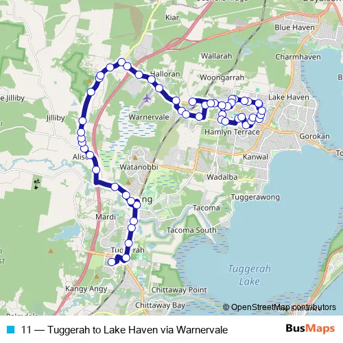 Bus 11 - Tuggerah to Lake Haven via Warnervale in Warnervale: Stops & Timetable