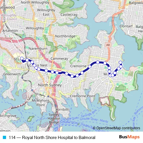 Click here to view the nearest 114 - Royal North Shore Hospital to Balmoral bus stop.
