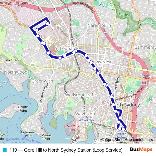 Bus 119 - Gore Hill to North Sydney Station (Loop Service): Full Schedule in Sydney