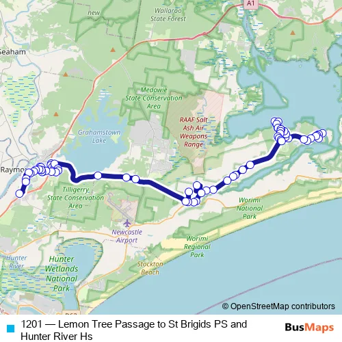 Click here to view the nearest 1201 - Lemon Tree Passage to St Brigids PS and Hunter River Hs bus stop.