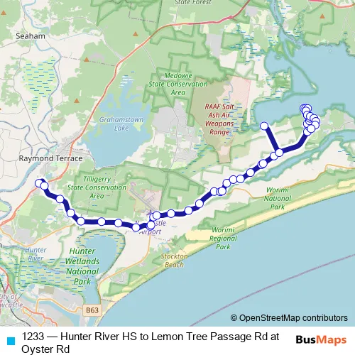Click here to view the nearest 1233 - Hunter River HS to Lemon Tree Passage Rd at Oyster Rd bus stop.