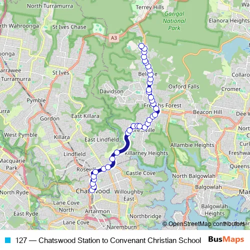 Bus 127 - Chatswood Station to Convenant Christian School: Full Schedule in Sydney
