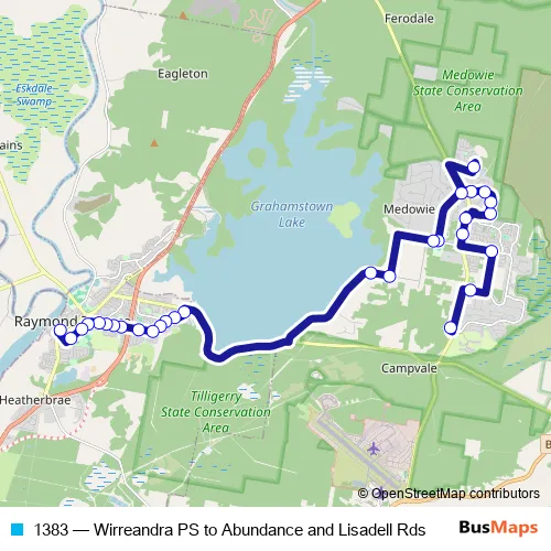 Bus 1383 - Wirreandra PS to Abundance and Lisadell Rds in Medowie: Stops & Timetable