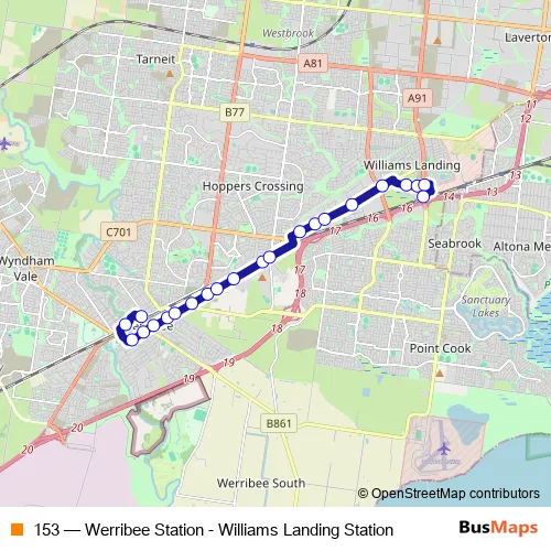 Bus 153 - Werribee Station - Williams Landing Station: Full Schedule in Melbourne