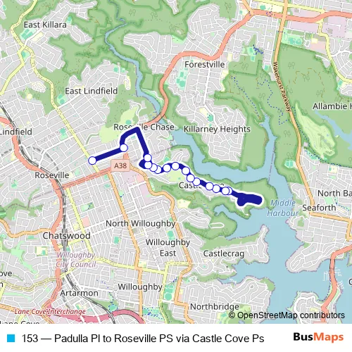 The first stop of the 153 bus route is Padulla Pl At Neerim Rd and the last stop is Roseville Public School, Addison Av. 153 (Padulla Pl to Roseville PS via Castle Cove Ps) is operational during on weekdays.
