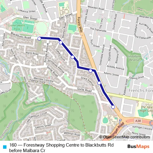 Bus 160 - Forestway Shopping Centre to Blackbutts Rd before Malbara Cr Schedule in Sydney