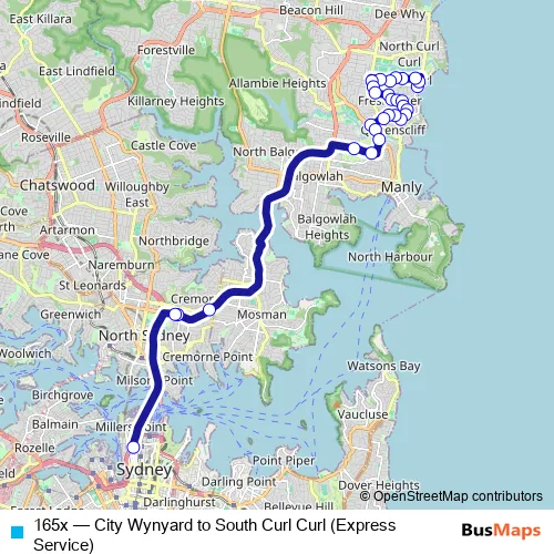 Click here to view the nearest 165x - City Wynyard to South Curl Curl (Express Service) bus stop.