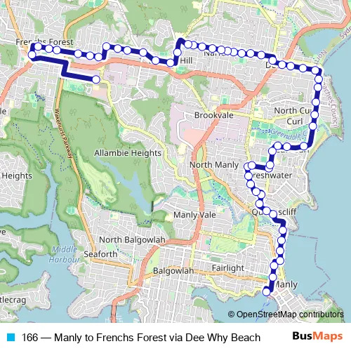 Bus 166 - Manly to Frenchs Forest via Dee Why Beach: Full Schedule in Sydney