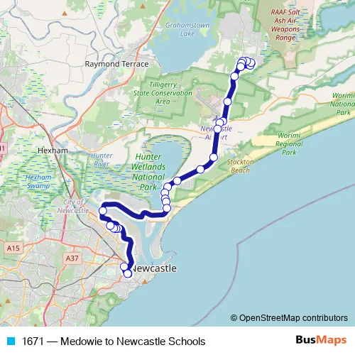 Click here to view the nearest 1671 - Medowie to Newcastle Schools bus stop.