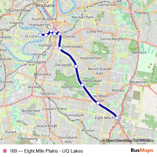 Bus 169 - Eight Mile Plains - UQ Lakes: Full Schedule in Brisbane