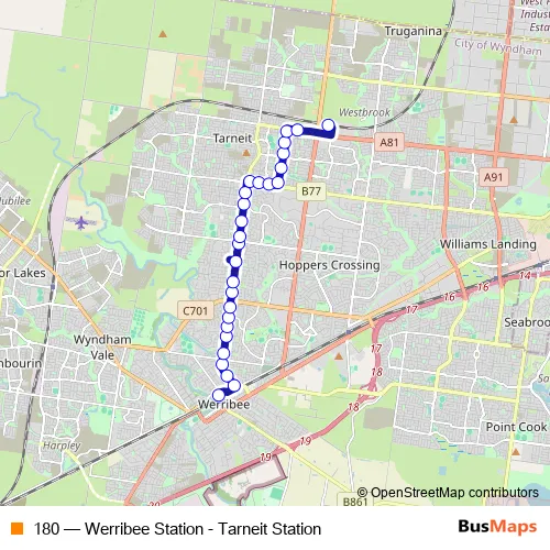 Bus 180 - Werribee Station - Tarneit Station in Laverton: Stops & Timetable