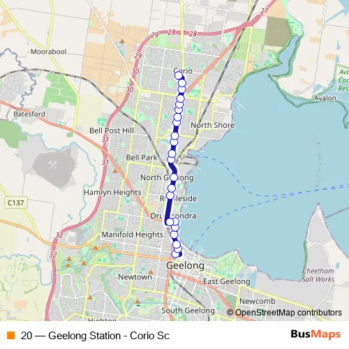 Click here to view the nearest 20 - Geelong Station - Corio Sc bus stop.