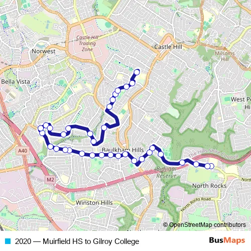 The first stop of the 2020 bus route is Muirfield High School, Barclay Rd and the last stop is Gilroy Catholic College, Marie St. 2020 (Muirfield HS to Gilroy College) is operational during on weekdays.