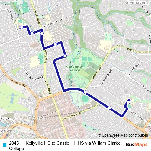 Click here to view the nearest 2045 - Kellyville HS to Castle Hill HS via William Clarke College bus stop.