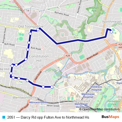 2051 (Darcy Rd opp Fulton Ave to Northmead Hs) Bus in Parramatta