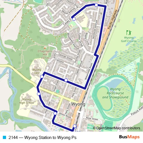 Click here to view the nearest 2144 - Wyong Station to Wyong Ps bus stop.