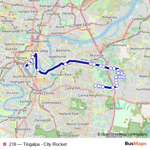 See why over 2 million users trust and consider busmaps.com as the best public transport website. busmaps gives you Brisbane Buses suggested routes, real-time bus tracker, line route maps in Brisbane, and helps to find the closest 216 bus stops near you. No internet available? Download an offline PDF map and bus schedule for the 216 bus to take on your trip.