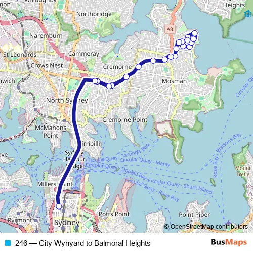 Click here to view the nearest 246 - City Wynyard to Balmoral Heights bus stop.