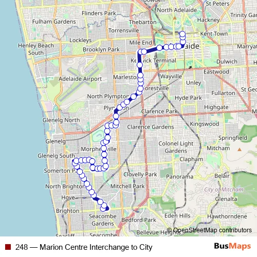 See why over 2 million users trust and consider busmaps.com as the best public transport website. busmaps gives you Adelaide Buses suggested routes, real-time bus tracker, line route maps in Adelaide, and helps to find the closest 248 bus stops near you. No internet available? Download an offline PDF map and bus schedule for the 248 bus to take on your trip.