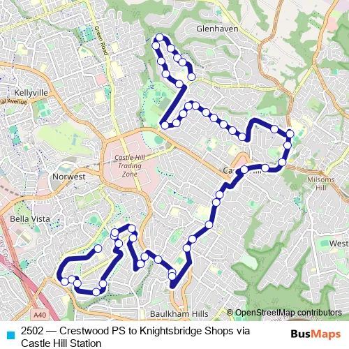 2502 Bus - Crestwood PS to Knightsbridge Shops via Castle Hill Station