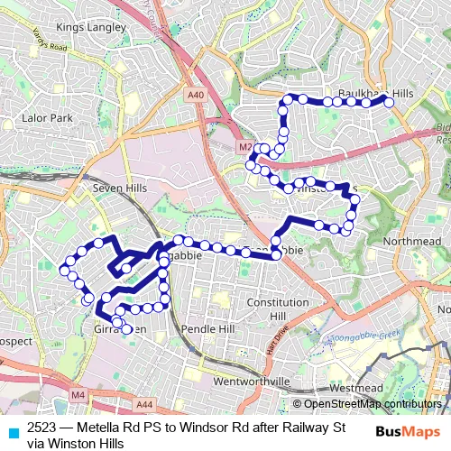 Click here to view the nearest 2523 - Metella Rd PS to Windsor Rd after Railway St via Winston Hills bus stop.
