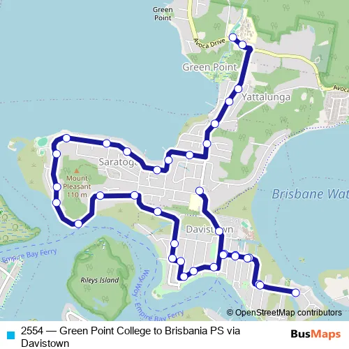 Click here to view the nearest 2554 - Green Point College to Brisbania PS via Davistown bus stop.