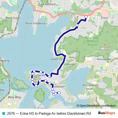 Bus 2578 - Erina HS to Paringa Av before Davidstown Rd: Full Schedule in Ettalong
