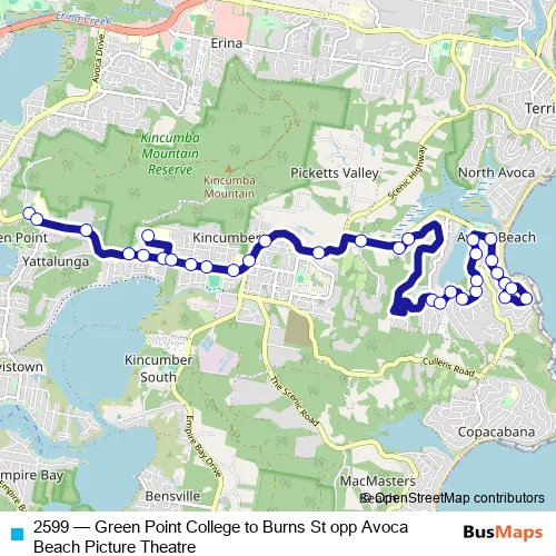 Bus 2599 - Green Point College to Burns St opp Avoca Beach Picture Theatre: Full Schedule in Kincumber
