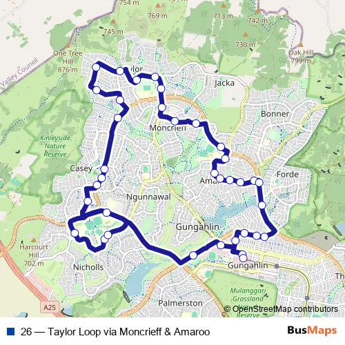 Bus 26 - Taylor Loop via Moncrieff & Amaroo in Canberra: Stops & Timetable