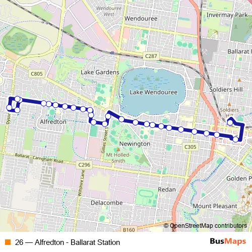 Bus 26 - Alfredton - Ballarat Station in Ballarat: Stops & Timetable