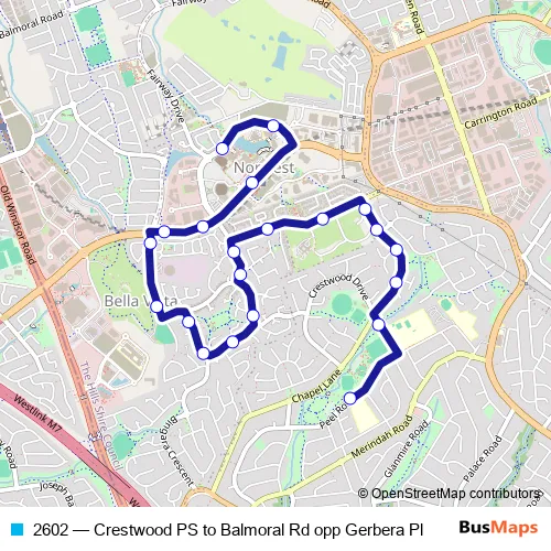 Click here to view the nearest 2602 - Crestwood PS to Balmoral Rd opp Gerbera Pl bus stop.