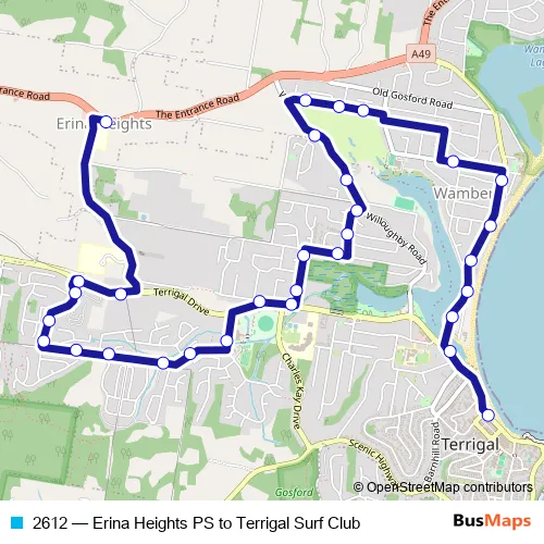 Bus 2612 - Erina Heights PS to Terrigal Surf Club Schedule in Kincumber