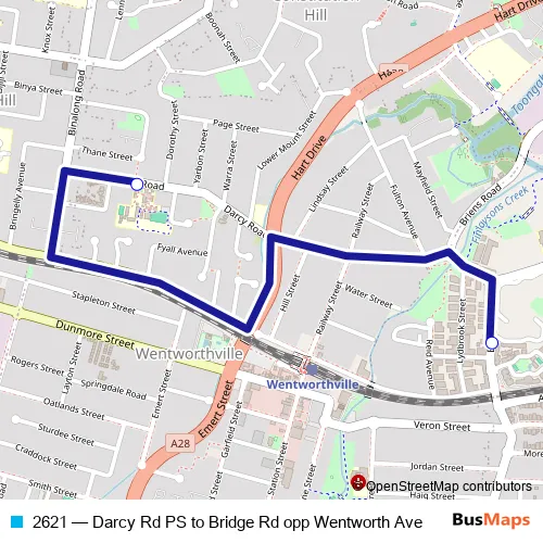 The first stop of the 2621 bus route is Darcy Road Public School, Darcy Rd and the last stop is Bridge Rd Opp Seventh Day Adventist Church. 2621 (Darcy Rd PS to Bridge Rd opp Wentworth Ave) is operational during on weekdays.
