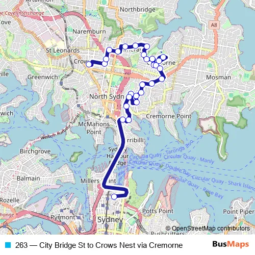 Click here to view the nearest 263 - City Bridge St to Crows Nest via Cremorne bus stop.