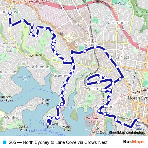 Click here to view the nearest 265 - North Sydney to Lane Cove via Crows Nest bus stop.