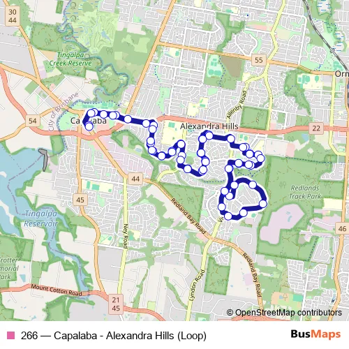 The first stop of the 266 bus route is Capalaba bus station, stop C and the last stop is Capalaba bus station arrival stop 2. 266 (Capalaba - Alexandra Hills (Loop)) is operational during everyday.