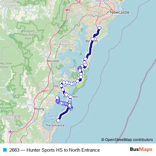 The first stop of the 2663 bus route is Belmont Christian College, John Fisher Rd and the last stop is Lake Haven Centre, Stand 4. 2663 (Hunter Sports HS to North Entrance) is operational during on weekdays.