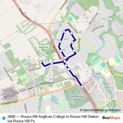 Click here to view the nearest 2686 - Rouse Hill Anglican College to Rouse Hill Station via Rouse Hill Ps bus stop.