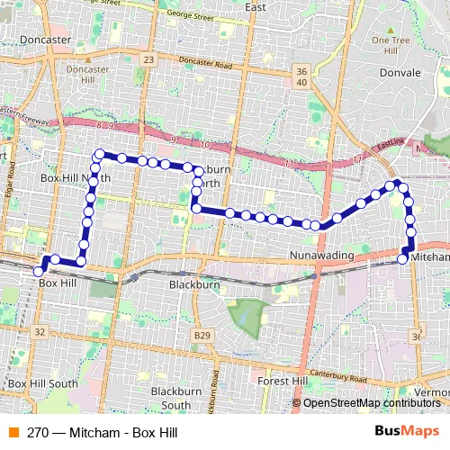 Click here to view the nearest 270 - Mitcham - Box Hill bus stop.
