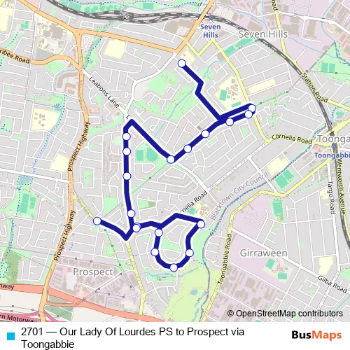 Click here to view the nearest 2701 - Our Lady Of Lourdes PS to Prospect via Toongabbie bus stop.