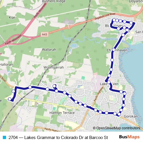 2704 (Lakes Grammar to Colorado Dr at Barcoo St) Bus in Warnervale